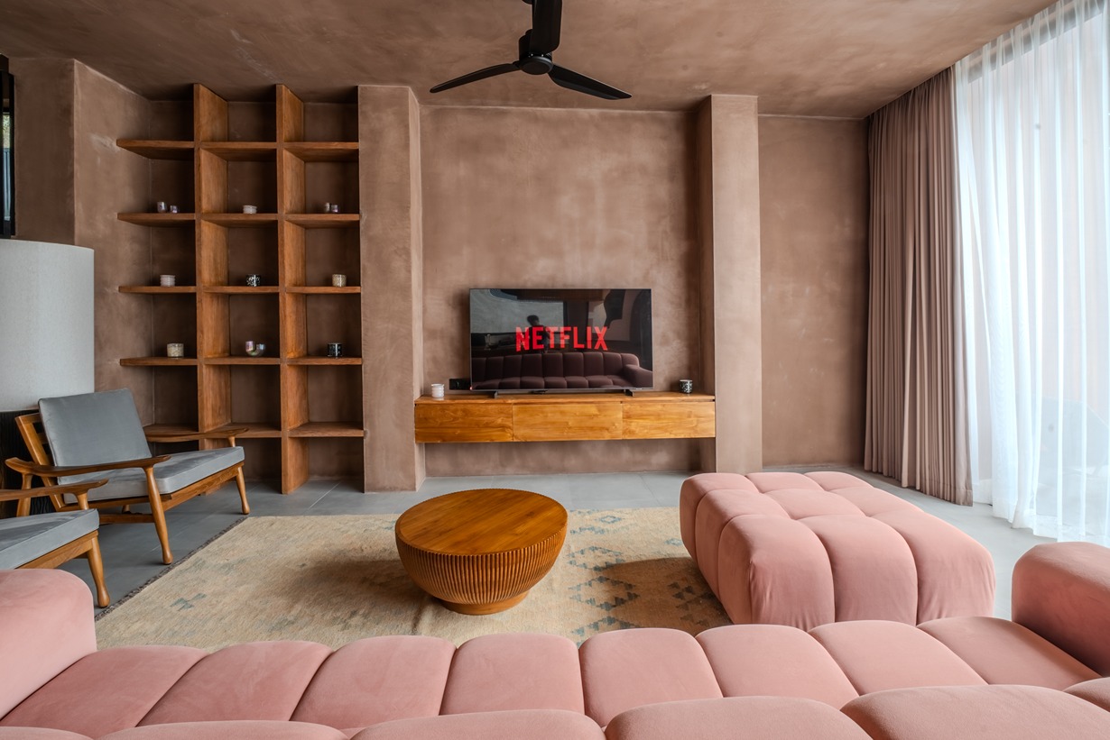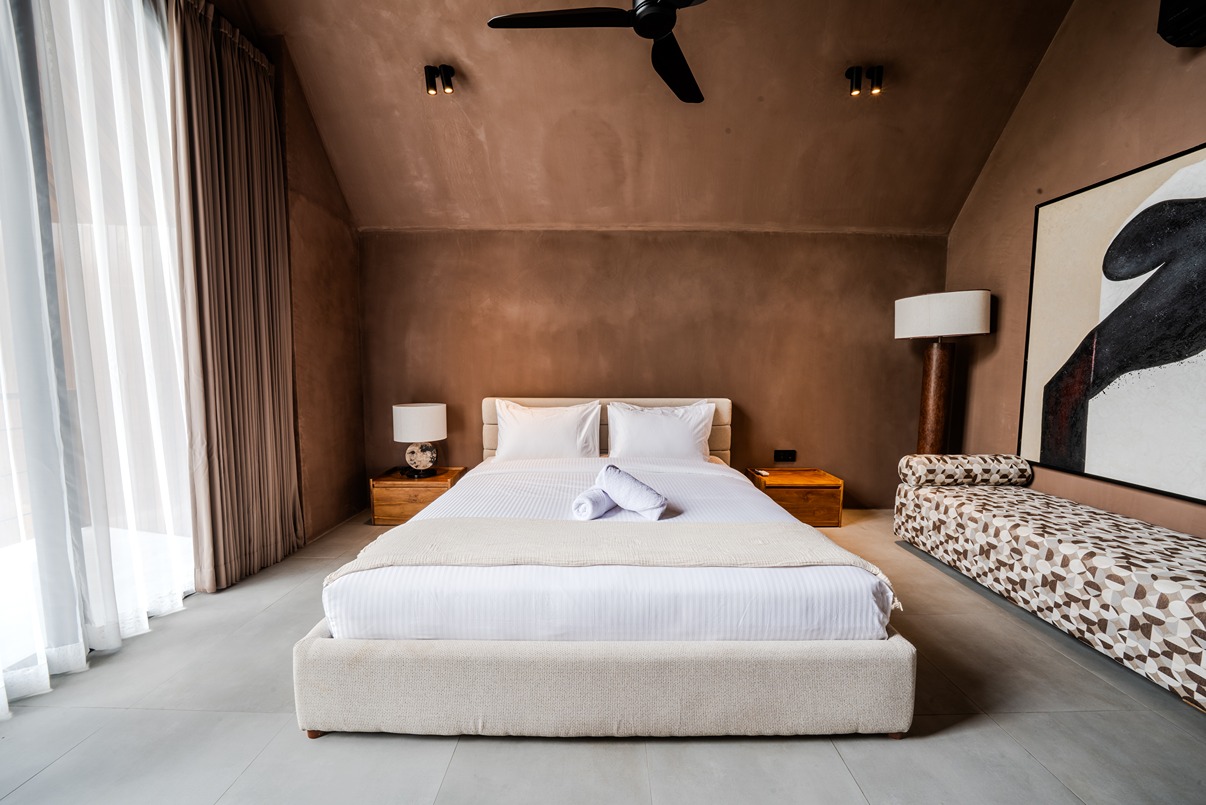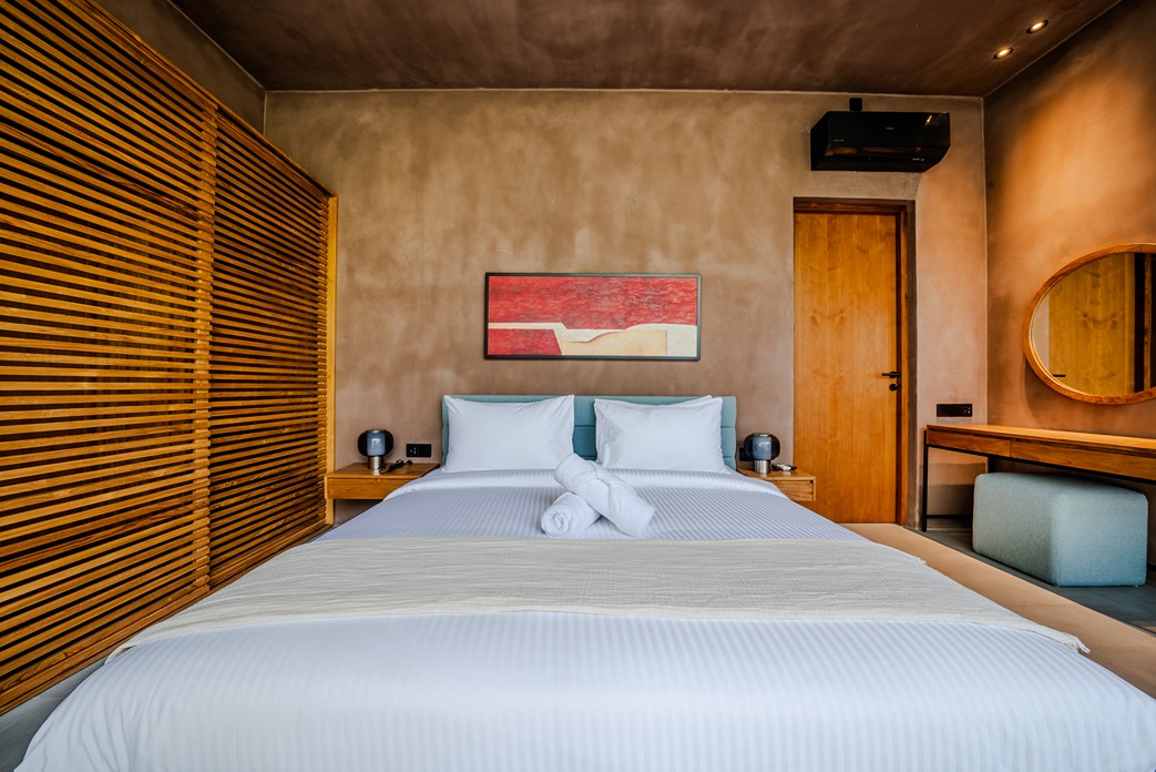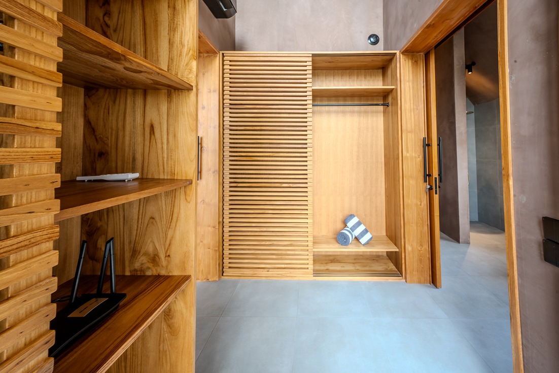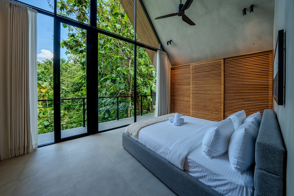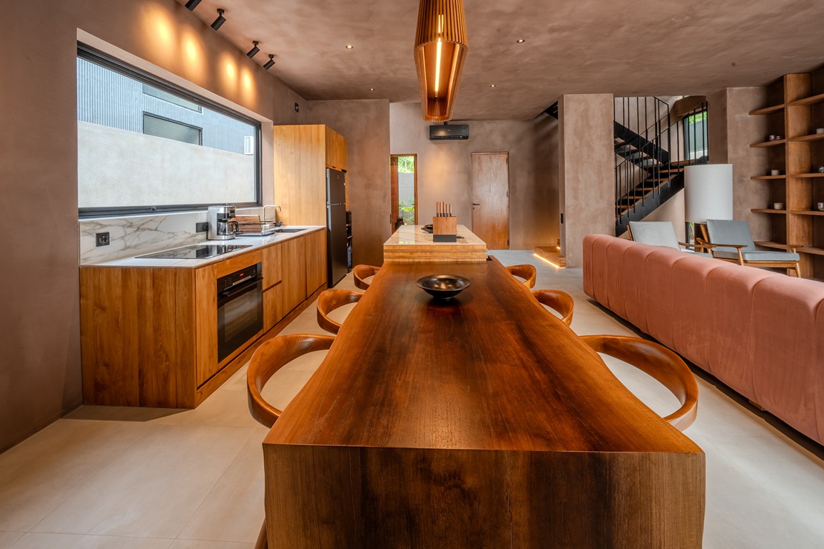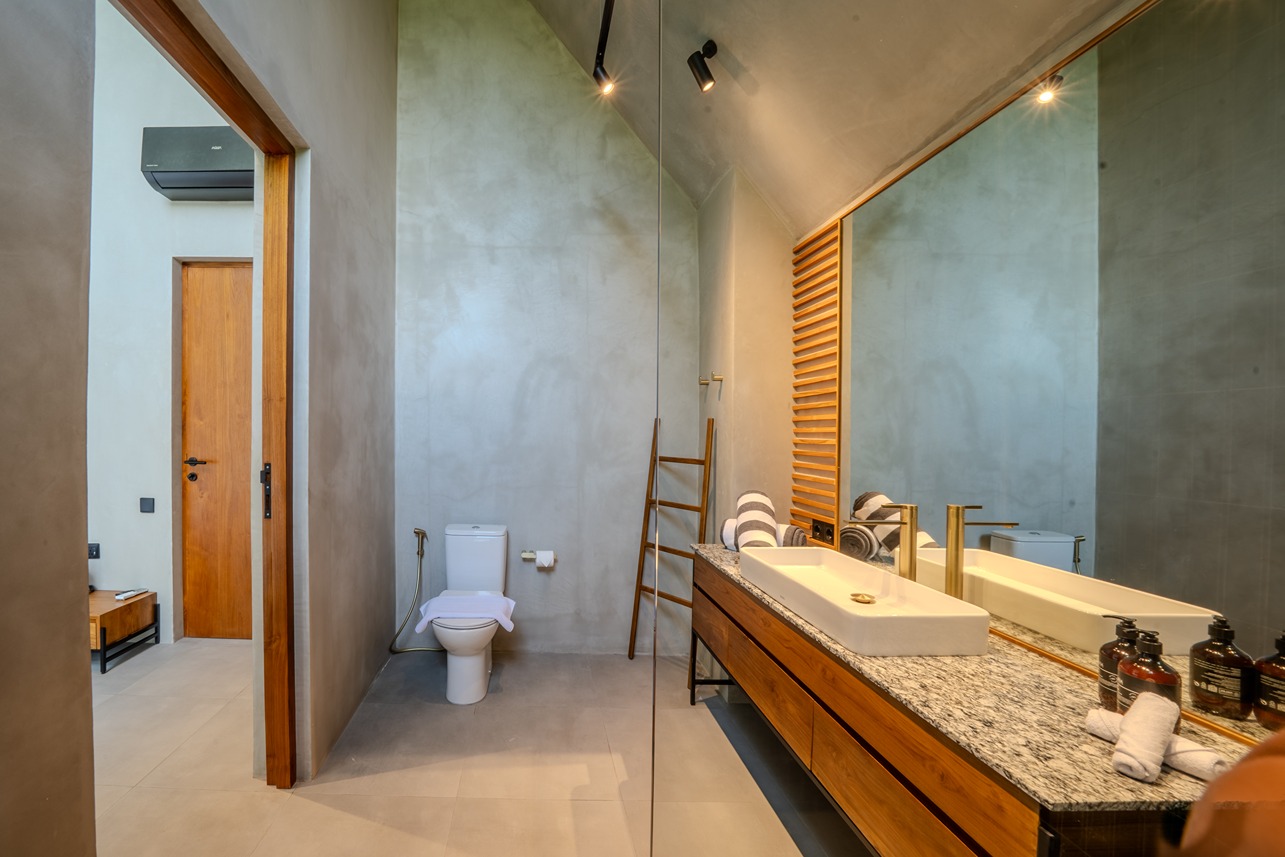 À l’extérieur, profitez d’une piscine privée, d’un espace lounge et d’un balcon à l’étage supérieur, idéal pour se détendre ou recevoir.