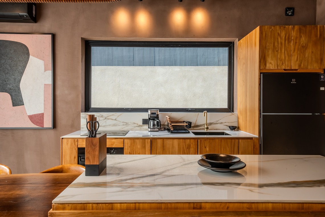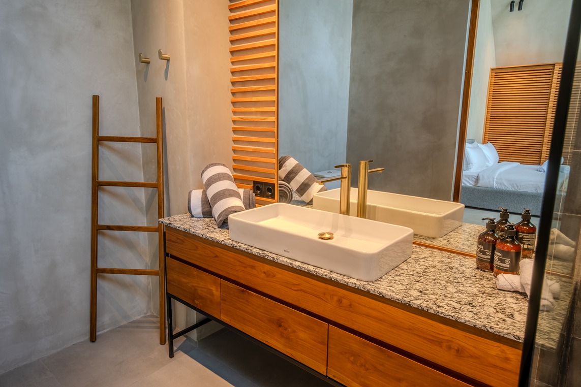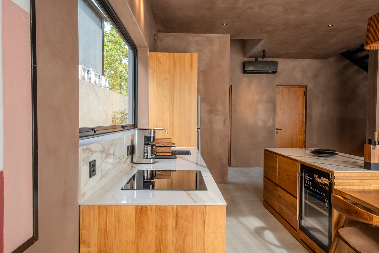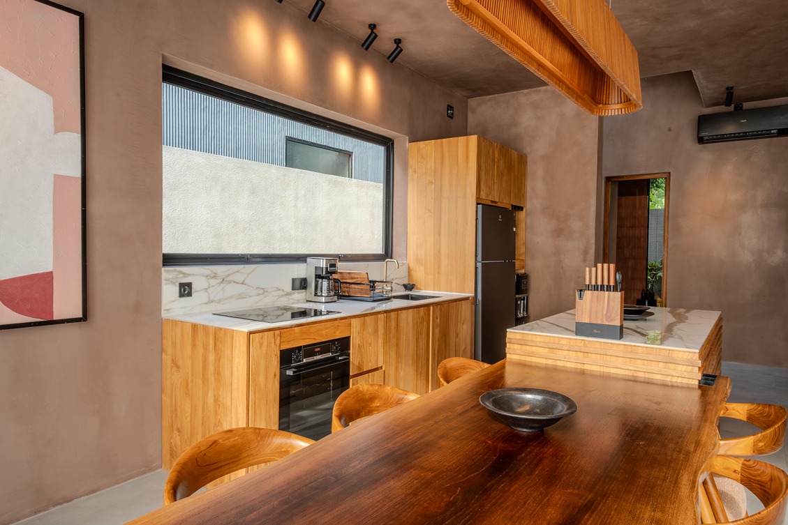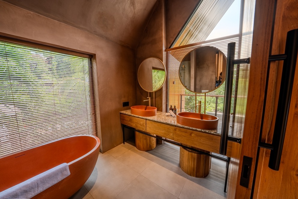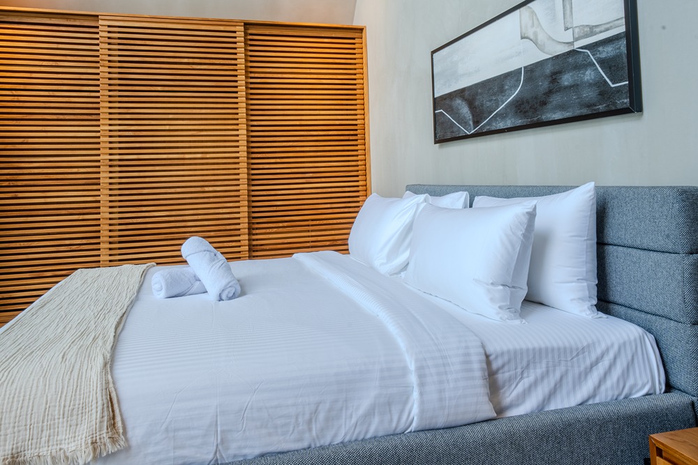 À l’extérieur, profitez d’une piscine privée, d’un espace lounge et d’un balcon à l’étage supérieur, idéal pour se détendre ou recevoir.