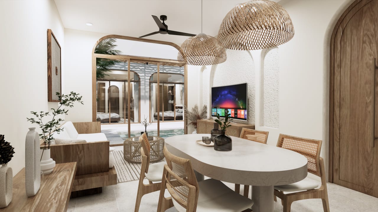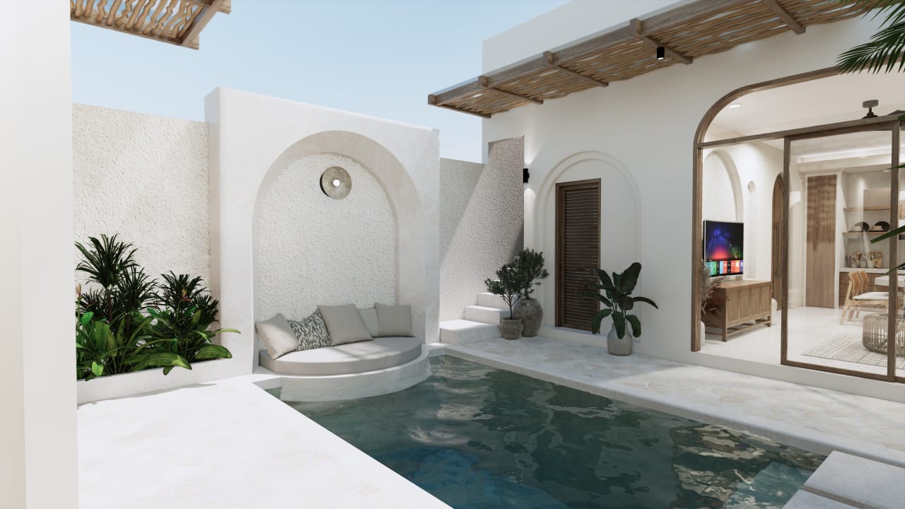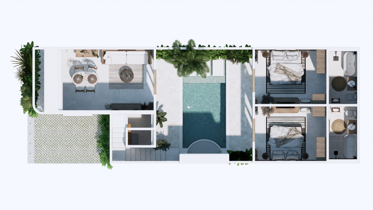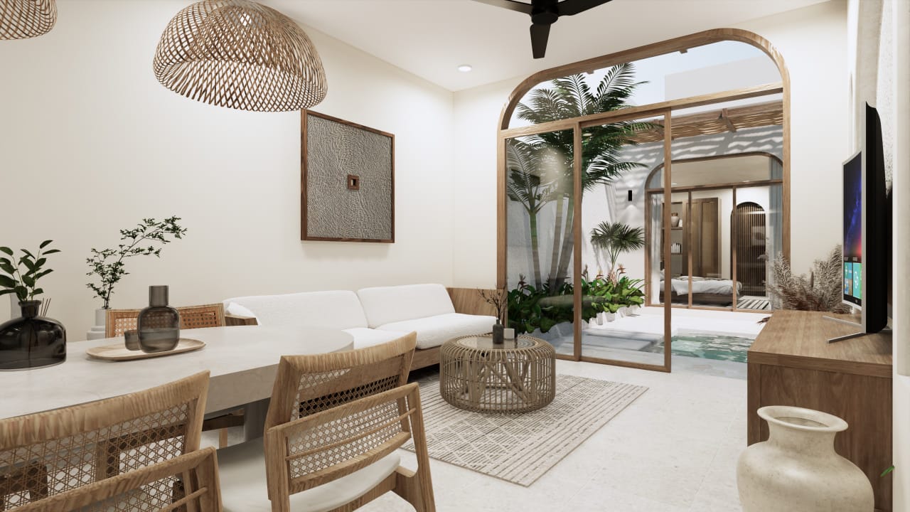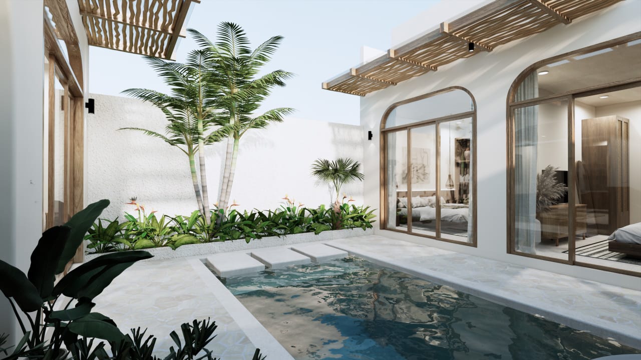 Une maison élégante de plain-pied située à Ungasan, près des plages de Melasti et Balangan, présentant une architecture méditerranéenne moderne. Cette propriété de 2 chambres et 2 salles de bain offre des intérieurs épurés, un espace de vie à concept ouvert et une parfaite harmonie entre l’intérieur et l’extérieur. Une piscine privée entourée d’un aménagement paysager tropical luxuriant offre un refuge serein, idéal pour une escapade de vacances luxueuse.