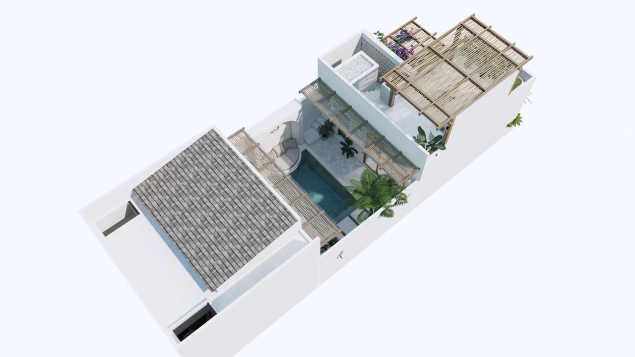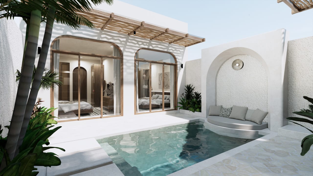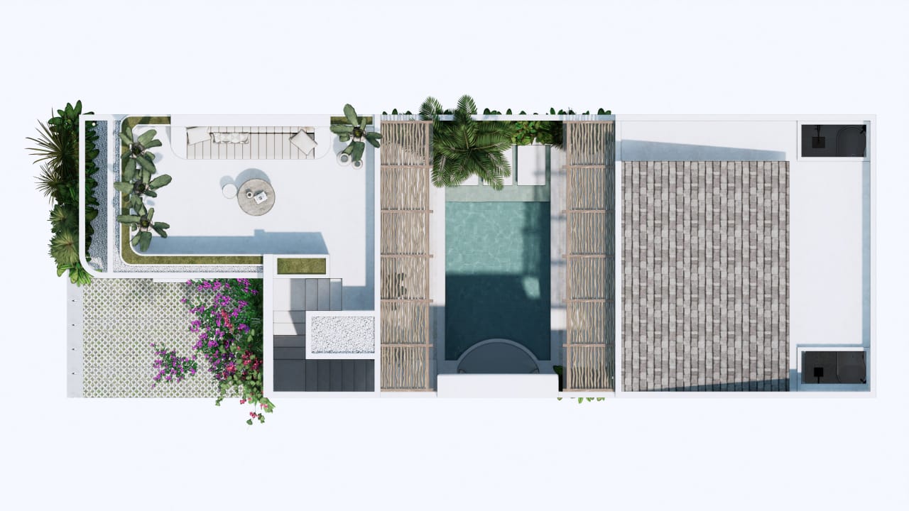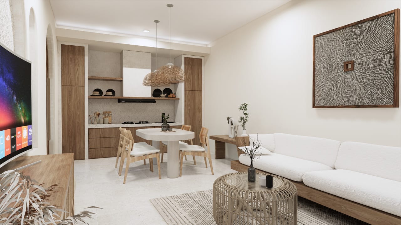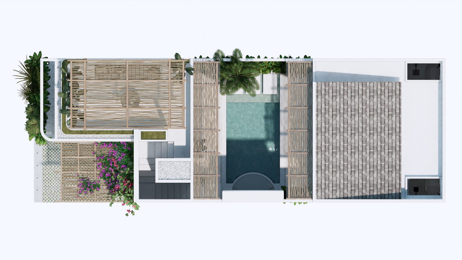 Une maison élégante de plain-pied située à Ungasan, près des plages de Melasti et Balangan, présentant une architecture méditerranéenne moderne. Cette propriété de 2 chambres et 2 salles de bain offre des intérieurs épurés, un espace de vie à concept ouvert et une parfaite harmonie entre l’intérieur et l’extérieur. Une piscine privée entourée d’un aménagement paysager tropical luxuriant offre un refuge serein, idéal pour une escapade de vacances luxueuse.