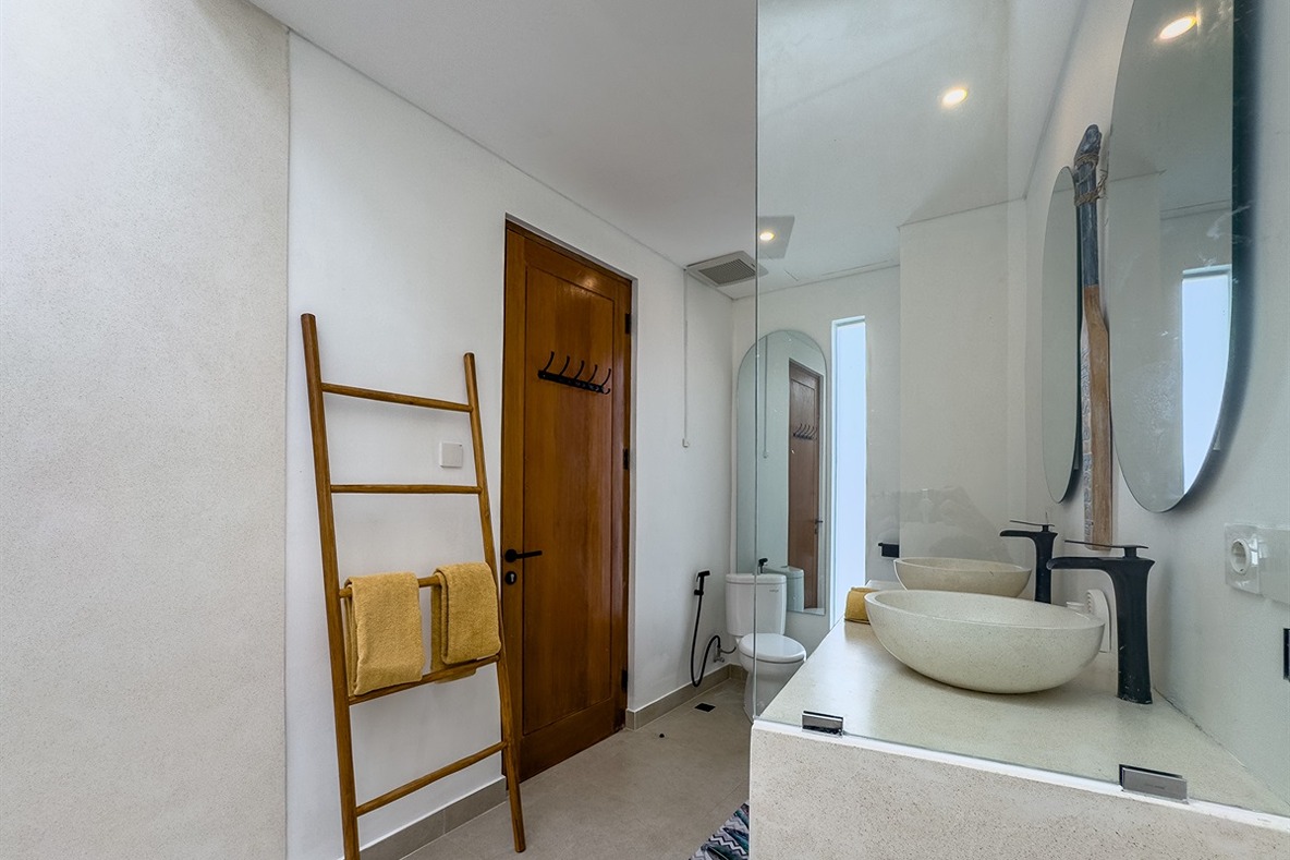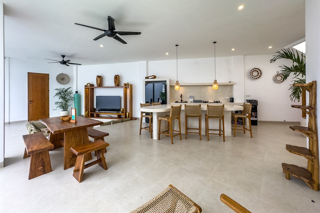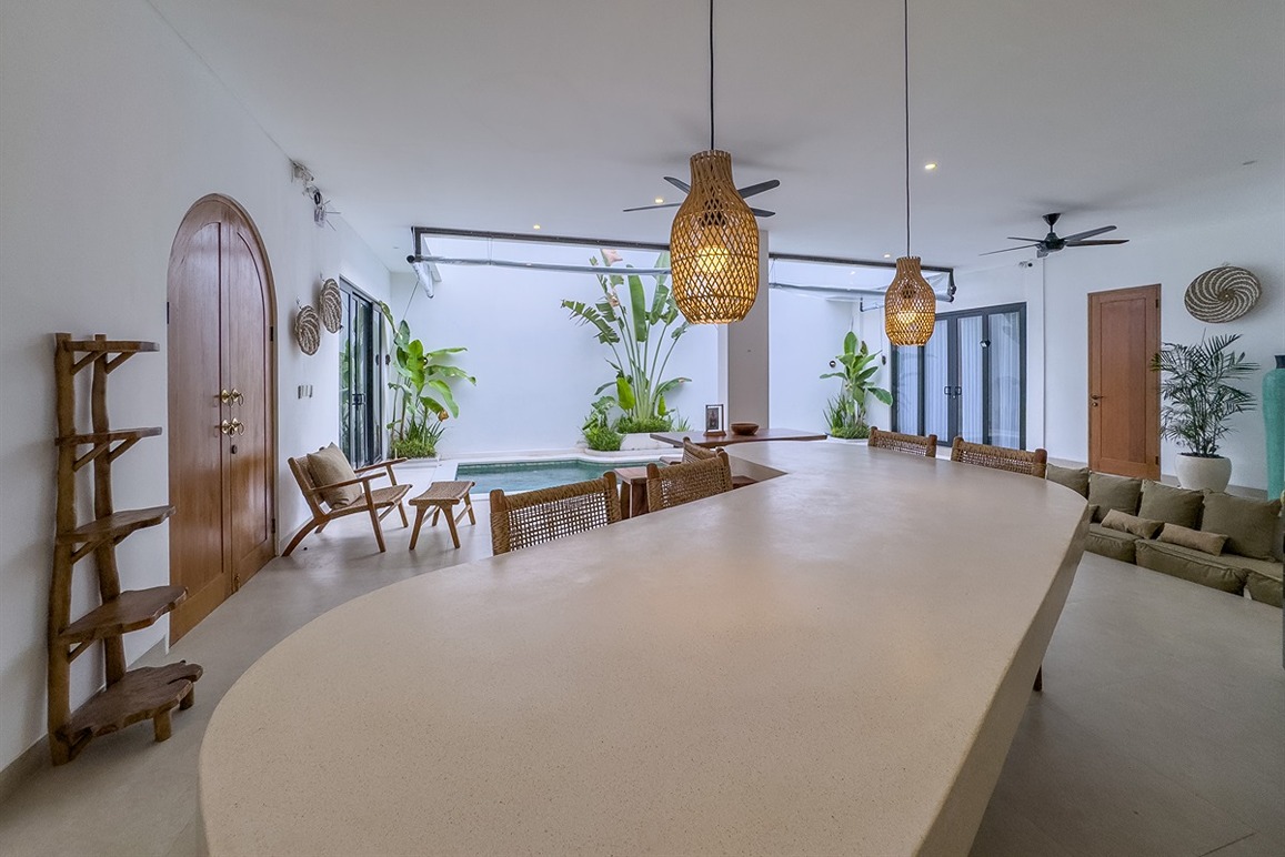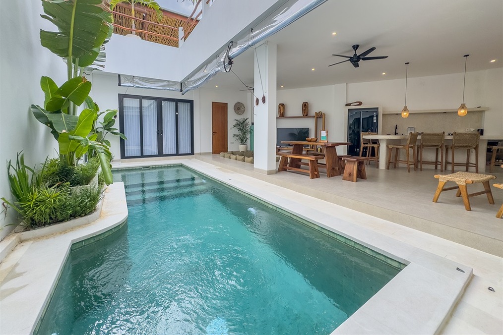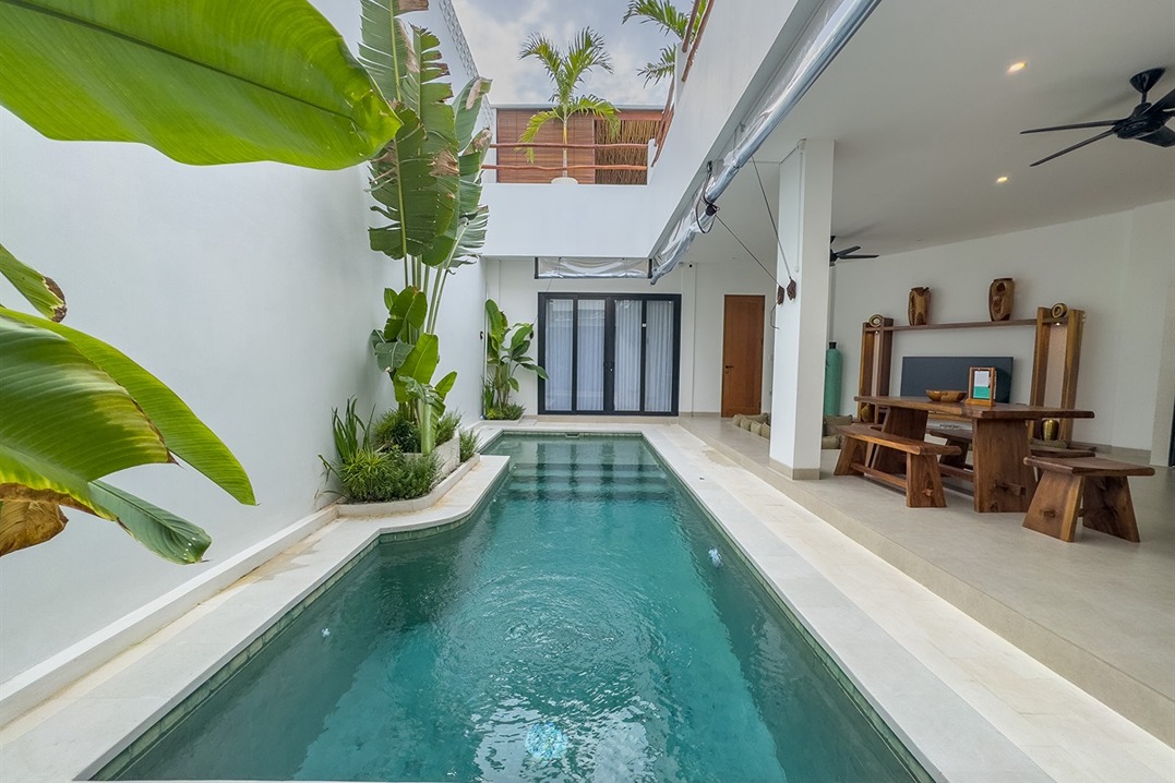 Cette villa tropicale moderne à Tumbak Bayuh offre un confort élégant et un cadre de vie raffiné, avec une vue sur la piscine et les environs résidentiels. Magnifiquement meublée et bien conçue, elle dispose d’un rooftop paisible idéal pour se détendre. Idéalement située près de Kaemon Bali et Torst Coffee, la villa se trouve à seulement 10 minutes en voiture de la plage de Pererenan — parfaite pour ceux qui recherchent à la fois la sérénité et un accès facile au style de vie animé de Canggu.