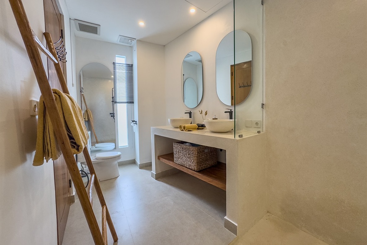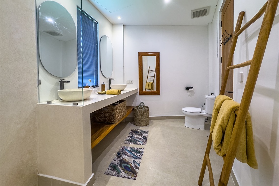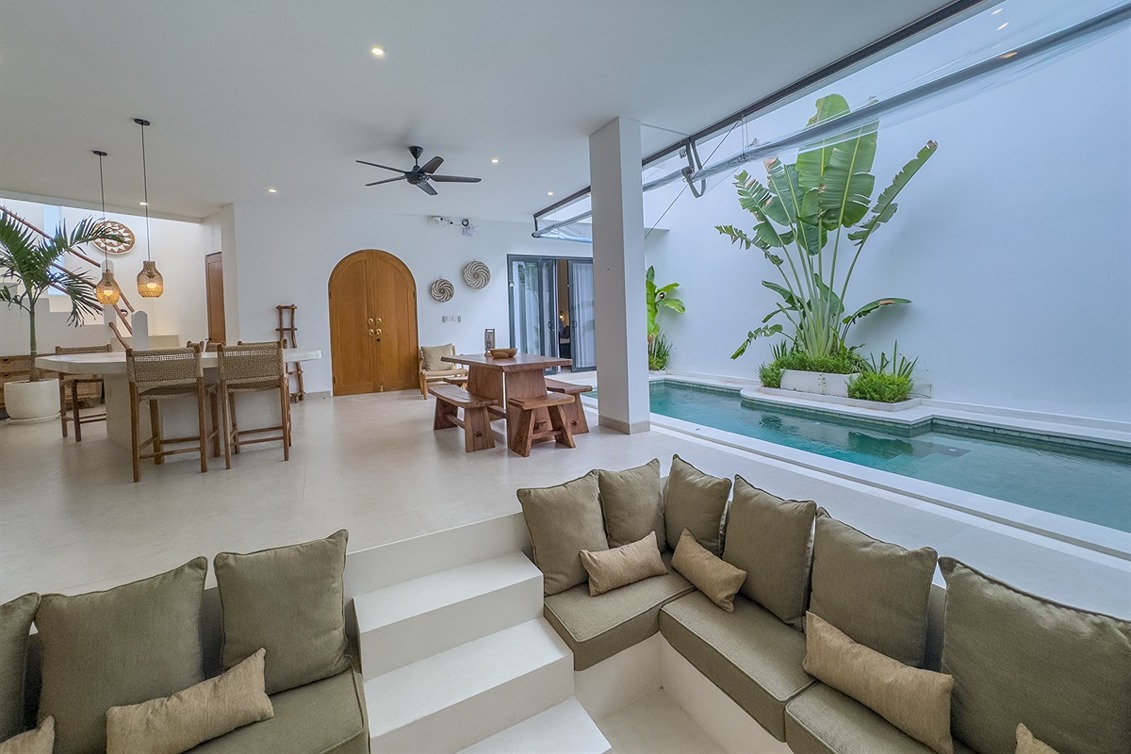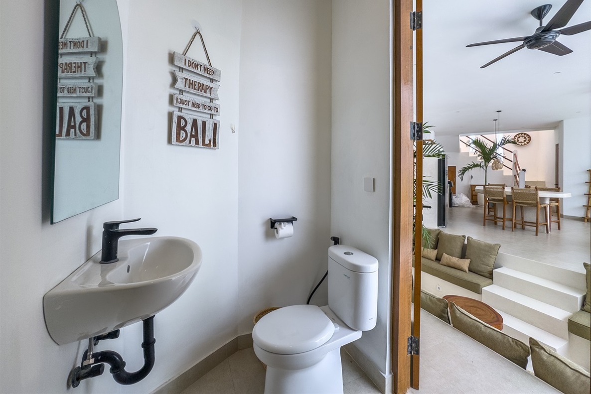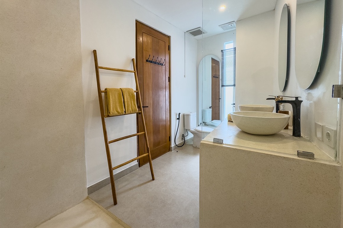 Cette villa tropicale moderne à Tumbak Bayuh offre un confort élégant et un cadre de vie raffiné, avec une vue sur la piscine et les environs résidentiels. Magnifiquement meublée et bien conçue, elle dispose d’un rooftop paisible idéal pour se détendre. Idéalement située près de Kaemon Bali et Torst Coffee, la villa se trouve à seulement 10 minutes en voiture de la plage de Pererenan — parfaite pour ceux qui recherchent à la fois la sérénité et un accès facile au style de vie animé de Canggu.