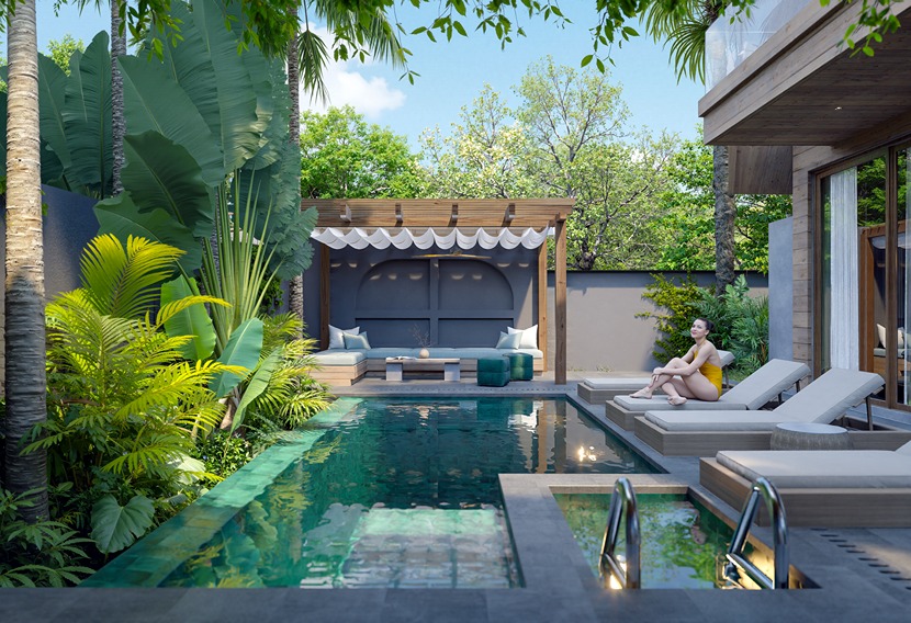 Cette charmante villa de 2 chambres à Ubud présente un design tropical chaleureux, mis en valeur par son toit triangulaire saisissant, créant une atmosphère aérée et accueillante. L’espace de vie ouvert mêle matériaux naturels, accents en bois et verdure luxuriante, offrant une connexion sereine avec la nature. Avec des chambres confortables, une salle de bain au style élégant et une piscine privée entourée de vues tropicales paisibles, cette villa est le refuge parfait à Ubud — combinant charme traditionnel et vie moderne décontractée.