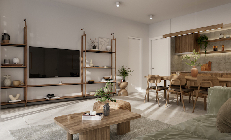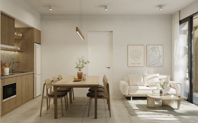 Salon Lumineux : Un espace de vie ouvert, baigné de lumière naturelle, offrant un accès direct à la terrasse et à la piscine.